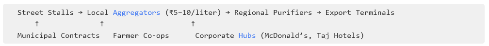 - Community Microhubs: Women’s self-help groups in Punjab and Maharashtra aggregate rural UCO, connecting 500+ villages to export pipelines 13